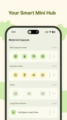 Material Capsule memungkinkan pengguna mengatur berbagai aksi khusus sesuai kebiasaan penggunaan. Misalnya, Anda dapat mengatur satu sentuhan untuk membuka aplikasi favorit, dua kali sentuhan untuk menjalankan fitur tertentu, atau tekan lama untuk membuka menu khusus.