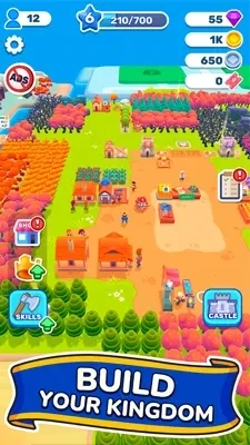 Dengan mekanisme farming dan idle, game ini memberikan pengalaman bermain yang santai. Kamu bisa menikmati perkembangan kerajaan tanpa tekanan.