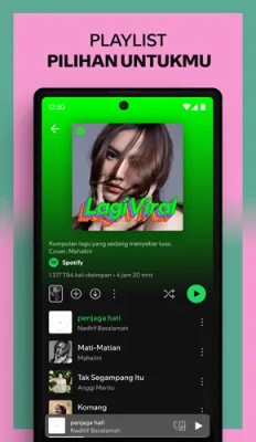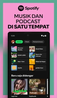 - Playlist Personal: Fitur seperti Discover Weekly menghadirkan lagu-lagu baru yang sesuai dengan selera kamu.