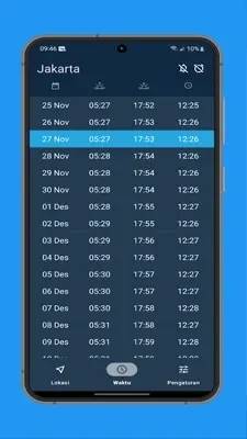 Aplikasi ini menampilkan waktu sunrise dan sunset secara detail sesuai dengan lokasi pengguna. Karena posisi matahari dapat berubah tergantung wilayah dan musim, sistem akan terus memperbarui data agar tetap akurat setiap harinya.