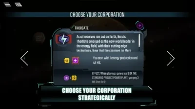 Misi mengubah Mars menjadi planet layak huni tentu tidak dilakukan sendirian. Dalam game ini, berbagai korporasi lain juga memiliki tujuan yang sama, yaitu menjadi kontributor terbesar dalam proses terraformasi.